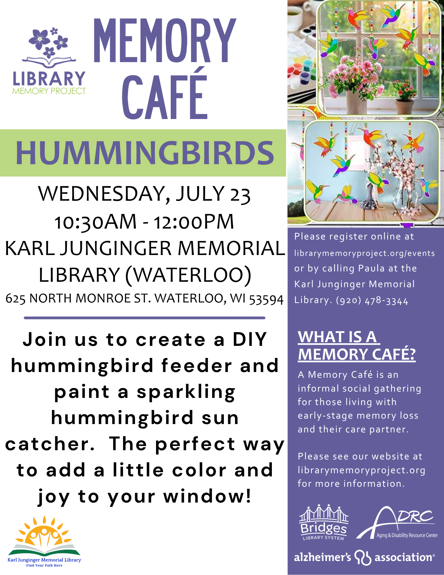 Jefferson Public Library 321 S. Main St., Jefferson, WI, United StatesMemory Cafe