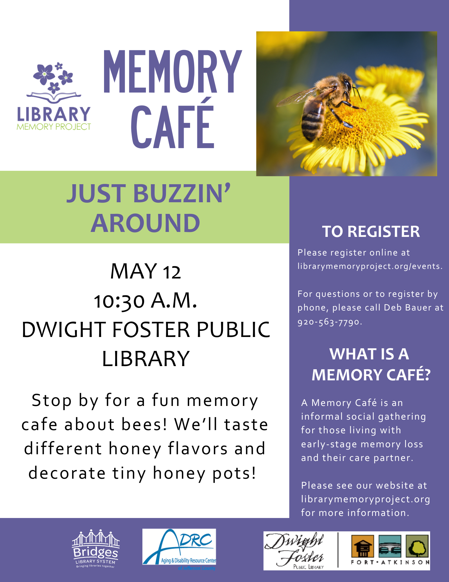 Dwight Foster Public Library (Fort Atkinson) 209 Merchants Ave., Fort Atkinson, WI, United StatesMemory Cafe